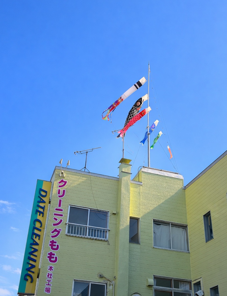 今日から、本社クリーニング工場屋上にて、鯉のぼりを上げています。